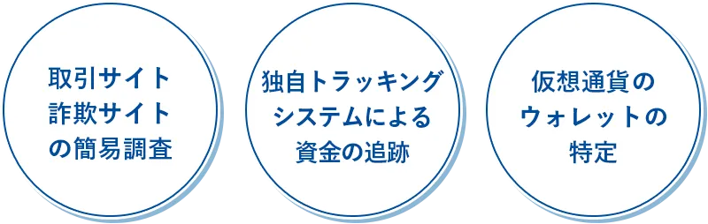 また、多くの詐欺事件を扱う中で、共通するウォレットアドレスやIPアドレスなどから、同一の詐欺業者や関連する複数の詐欺案件を特定するための独自のデータベースを構築しており、これにより詐欺業者の特定や資金回収の可能性を高めることができます。